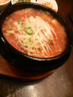 今ただいましてとりあえず1人でキムチチゲ(笑)